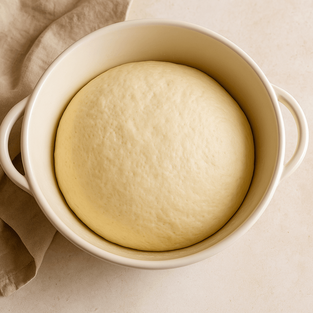 Muotoile taikinasta pallo, laita se kevyesti öljyttyyn kulhoon ja peitä liinalla.