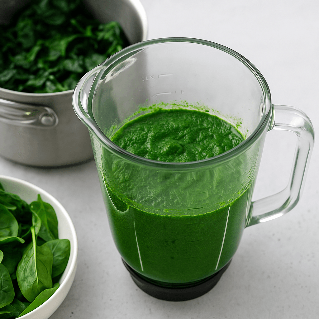 Soseuta pinaatti sileäksi blenderissä tai sauvasekoittimella.