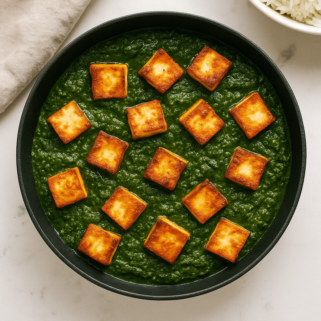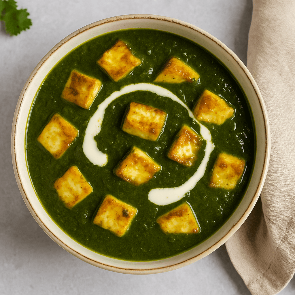 Se yhdistää tuoreen pinaatin vihreyden ja paneer-juuston pehmeyden täyteläiseksi, mausteiseksi kastikkeeksi, joka vie suoraan Intian lämpimiin makumaailmoihin.