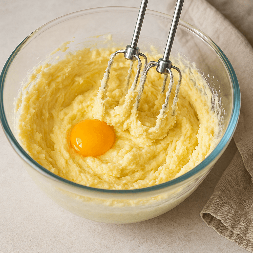 Vaahdota voi ja sokerit kuohkeaksi. Lisää keltuaiset yksitellen.