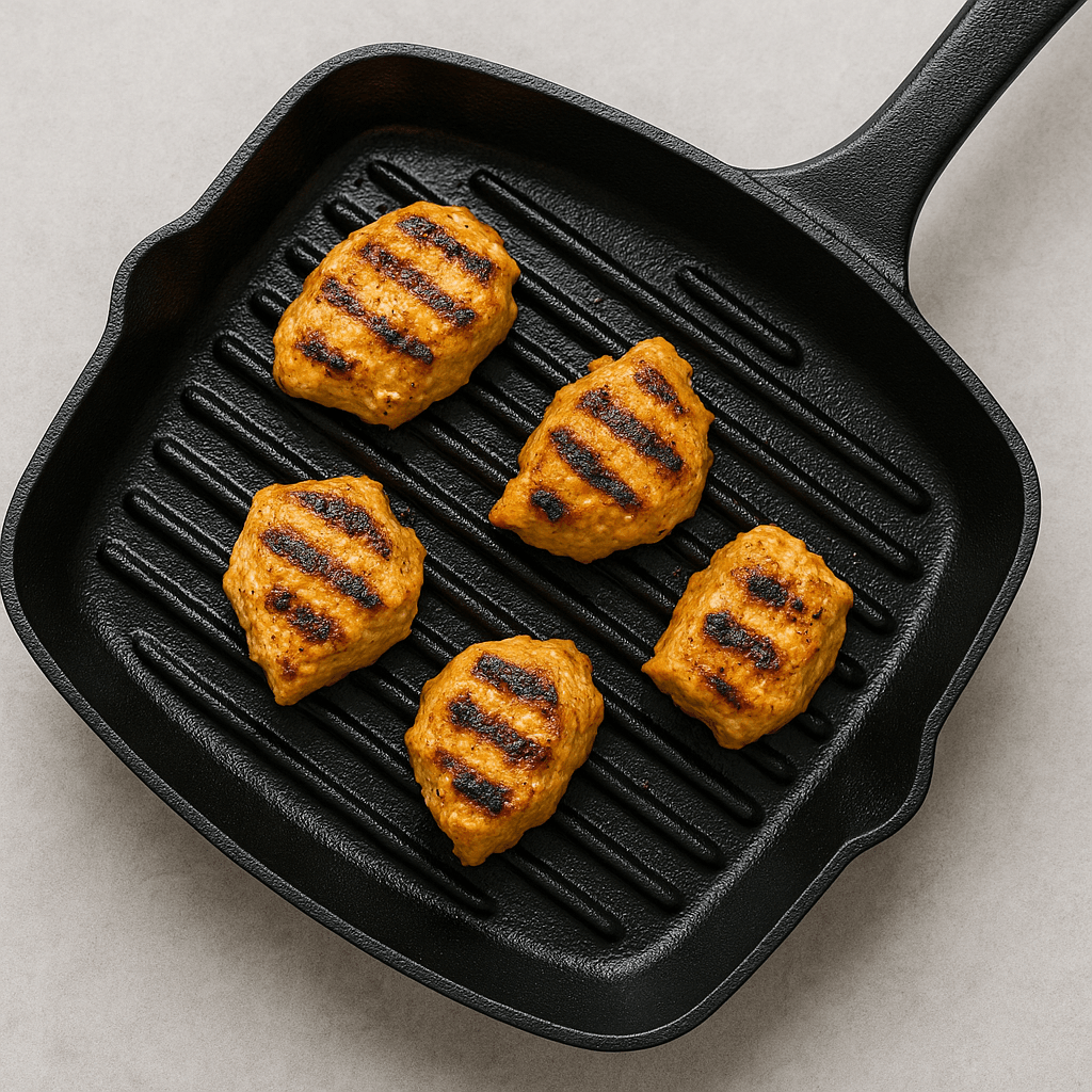 Paista tai grillaa marinoidut kanapalat, kunnes ne saavat kauniin värin. Ne kypsyvät loppuun kastikkeessa.