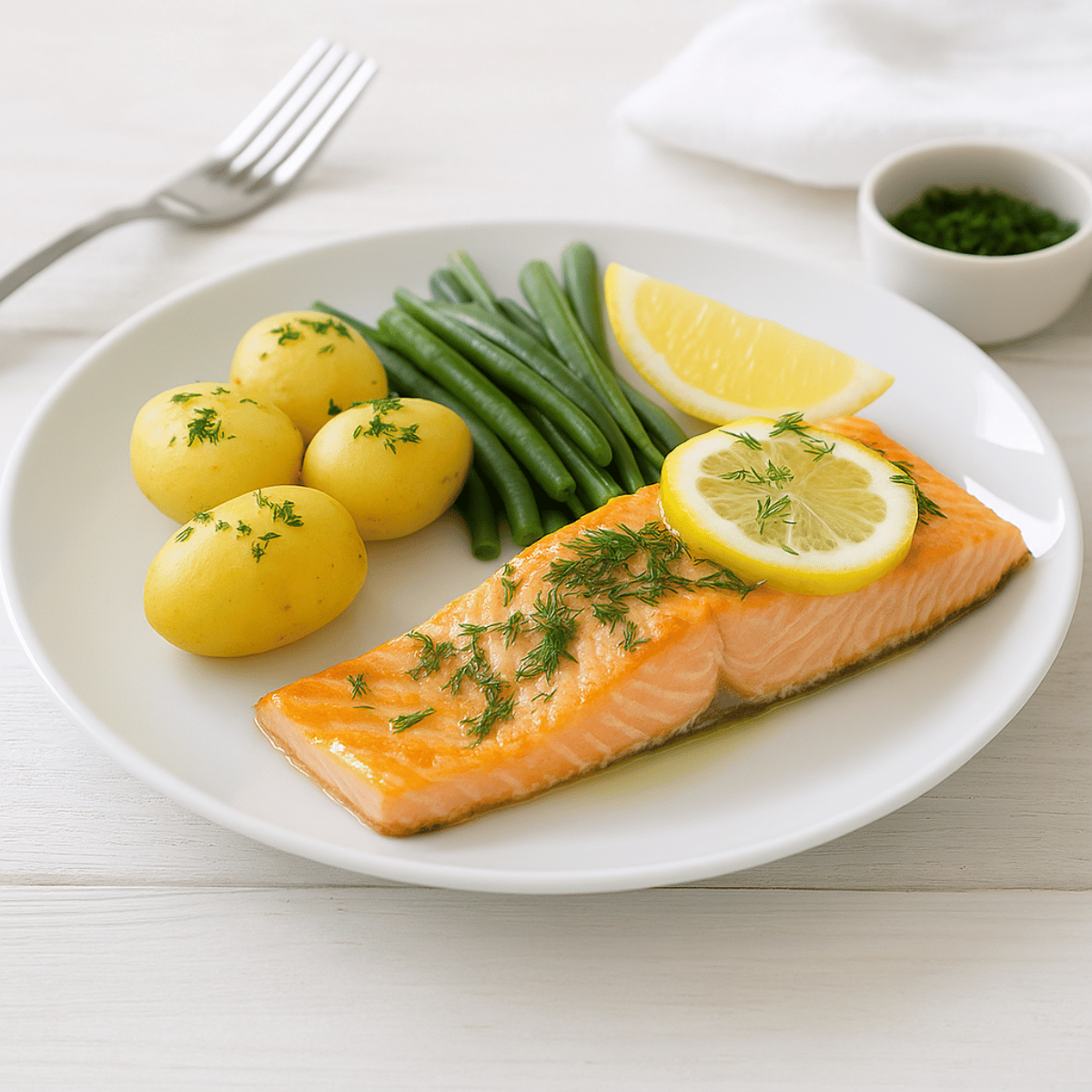 - Uunilohi ja höyrytetyt kasvikset: terveellinen ja kevyt arkilounas.